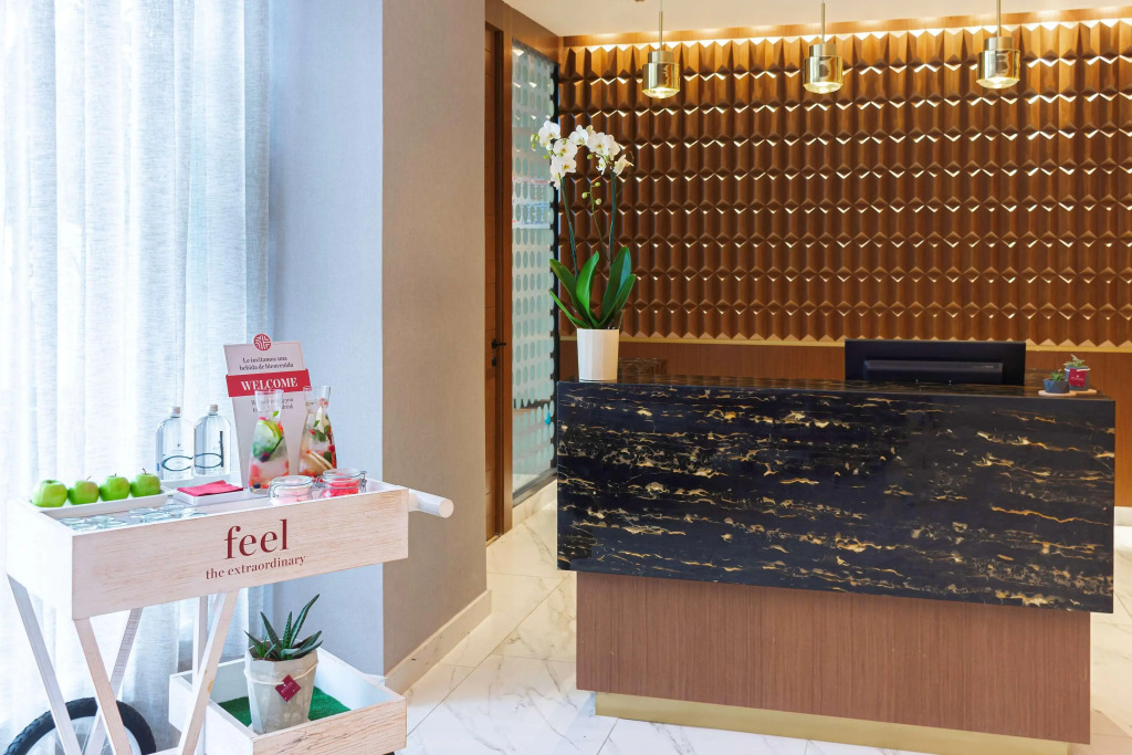 В отеле постояльцам предлагаются также услуги переводчика, проведение бракосочетания, бронирование билетов. На территории работает кафе. Персонал свободно владеет иностранными языками.