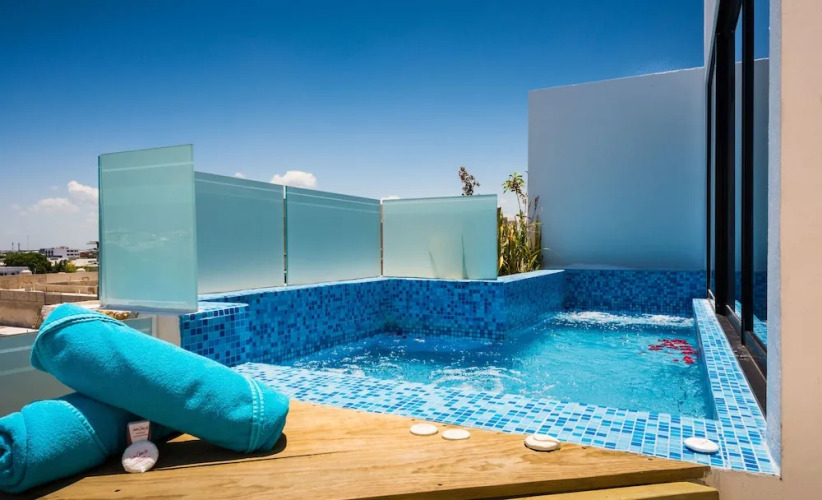 Отель A Nah Suites Apartamentos by CSR, адрес на карте Плайа-дель-Кармен, Avenida 20, с описанием номеров и возможностью онлайн бронирования на ресурсе vashotel.ru , цены проживания и удобства.
