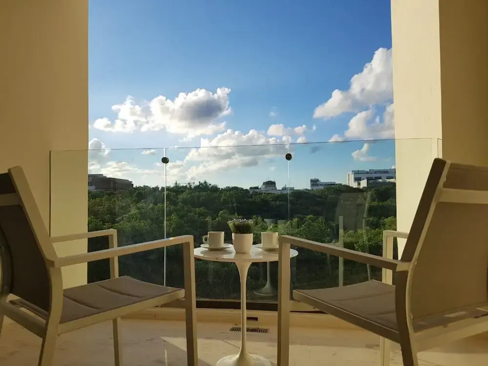 Отель Brand New 1 BR Condo with jungle view by Happy Address, адрес на карте Плайа-дель-Кармен, Calle 38 Norte esquina calle Flamingo, с описанием номеров и возможностью онлайн бронирования на ресурсе ВашОтель.RU , стоимость проживания и удобства.