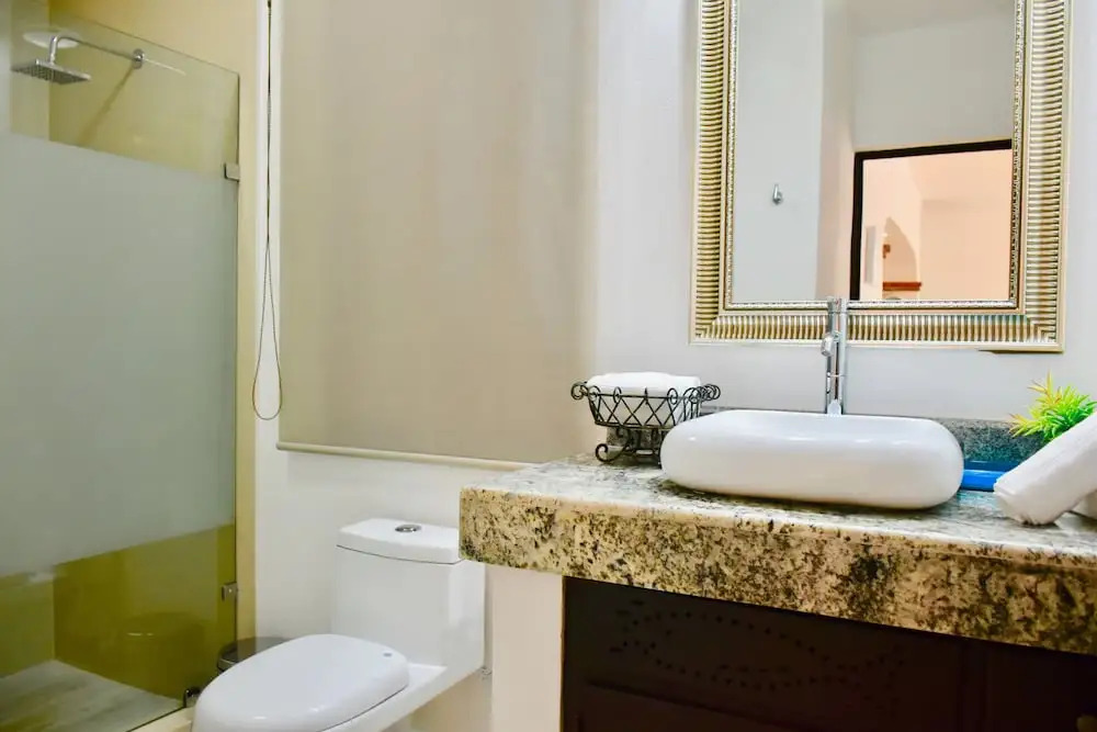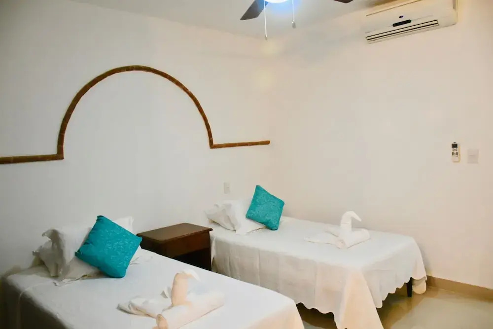 Отель Hacienda Guadalupe by Seaside 3 звезды, адрес на карте Плайа-дель-Кармен, Calle 14 Nte Bis y Av. 15 Nte, с описанием номеров и доступностью онлайн бронирования на ресурсе vashotel.ru , стоимость проживания и удобства.