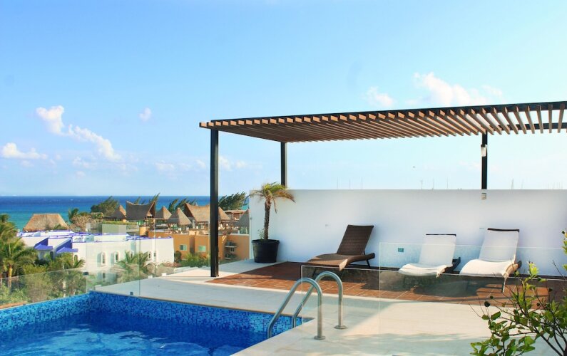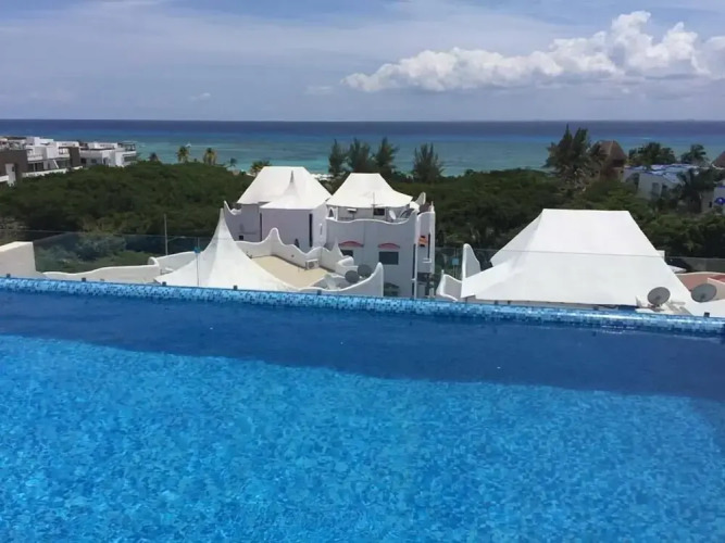 Отель Menesse On the Beach Apartment 4, адрес на карте Плайа-дель-Кармен, Av. Cozumel y Calle 40 Edificio, с описанием номеров и доступностью онлайн бронирования на площадке vashotel.ru , цены проживания и удобства.