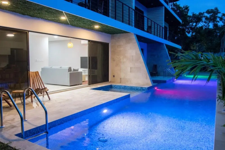 Отель Elegant Stylish 2BR Apartment Aldea Zama Swimming Pool Jacuzzi Terrace, адрес на карте Тулум, Brava Towers, с характеристиками номеров и доступностью онлайн бронирования на площадке vashotel.ru , стоимость проживания и удобства.