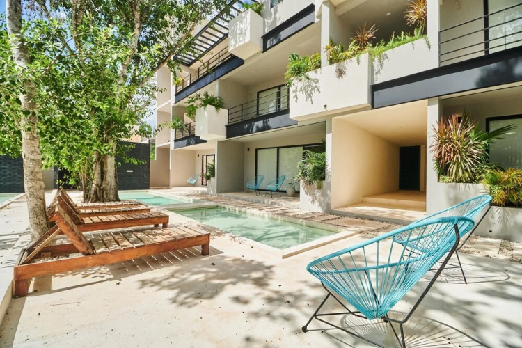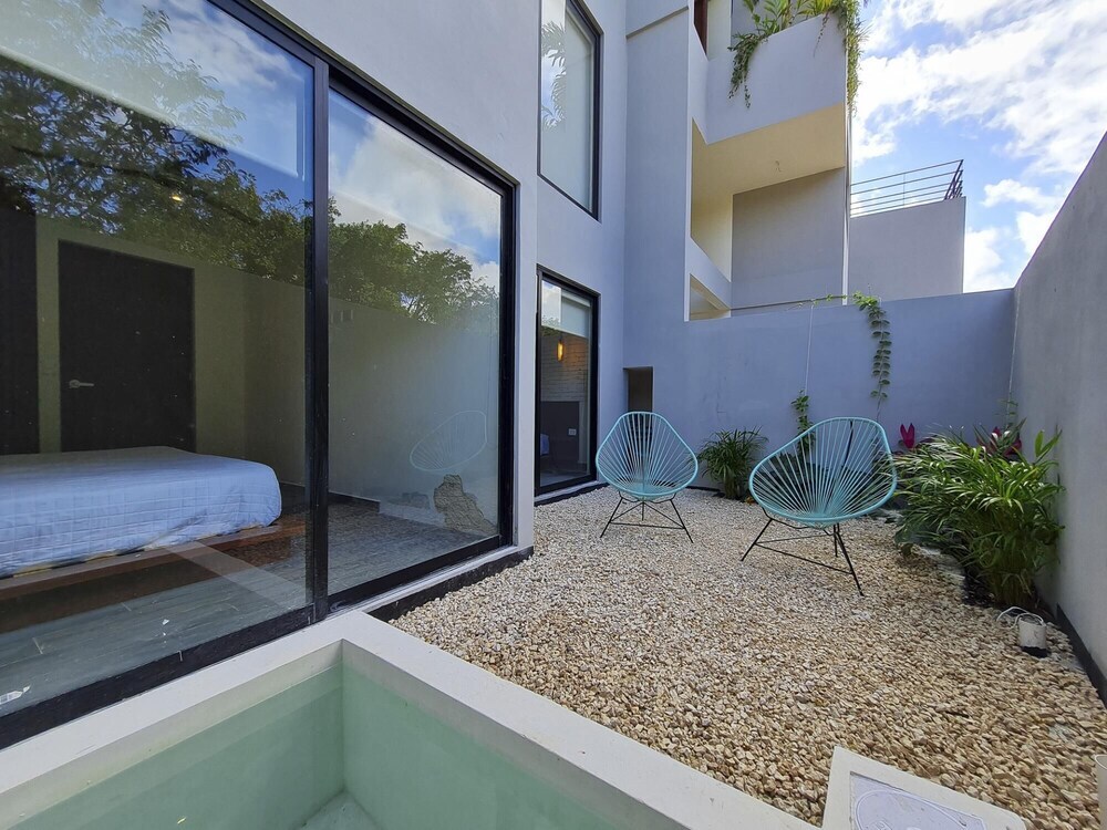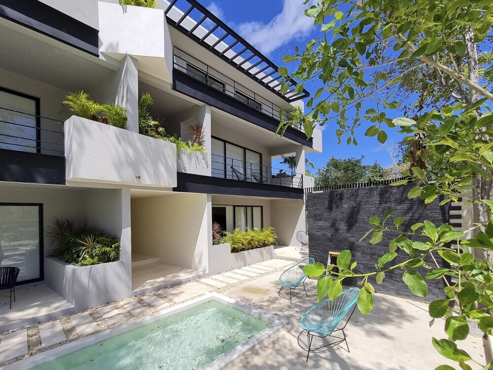 Отель Fabulous Condo in Stylish Complex Exquisite Private Terrace With Plunge Pool in La Veleta, адрес на карте Тулум, Rosa de Plata A001, с описанием номеров и доступностью онлайн бронирования на сайте vashotel.ru , стоимость проживания и удобства.