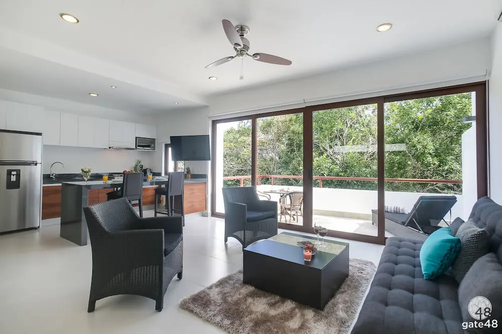 Отель LAO G9 Jungle view loft by Gate48, адрес на карте Тулум, Carr. fed Chetumal Benito Juarez Km 250 Residencial TAO, Manzana 3, с описанием номеров и доступностью онлайн бронирования на ресурсе ВашОтель.RU , цены проживания и удобства.