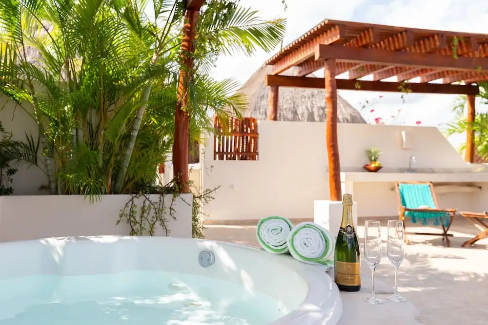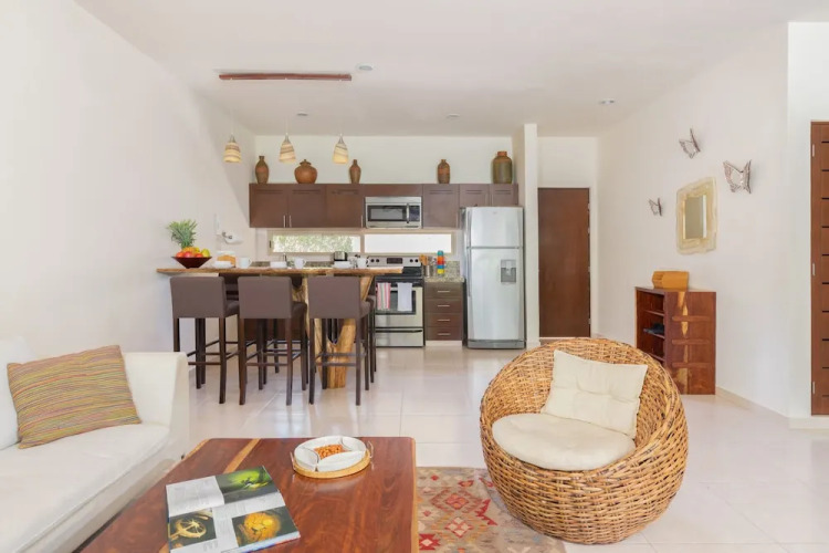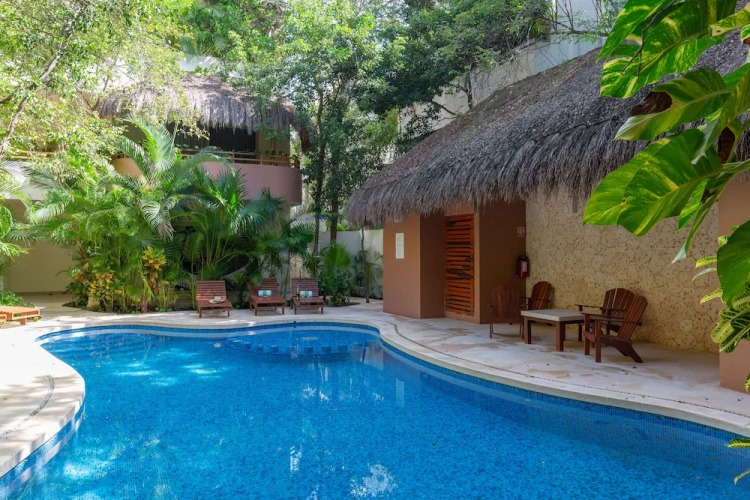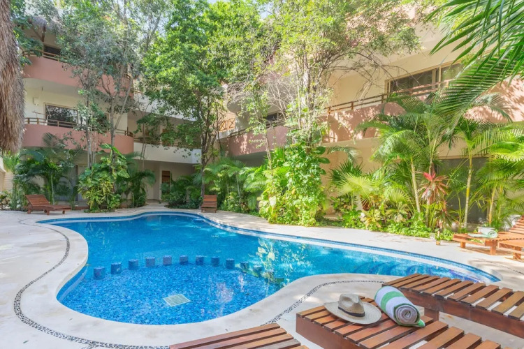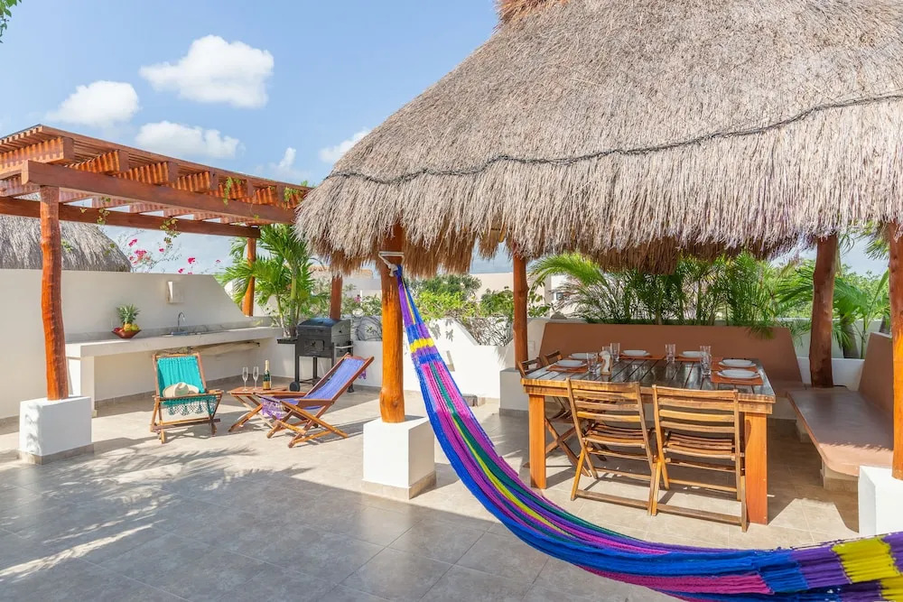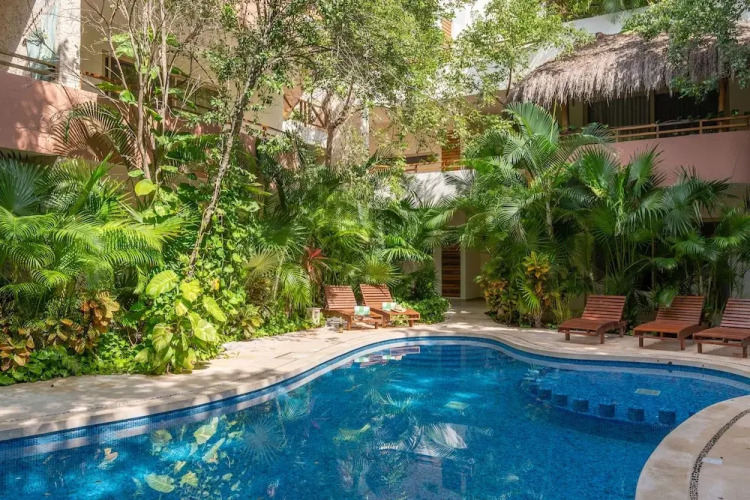 Отель Secret Garden Oasis 3BR Penthouse, адрес на карте Тулум, Calle Kabah Mz 11, Lote 6, Depto 302, Zama Gardens, Aldea Zama, Zama, 77780 Tulum, Mexico, с характеристиками номеров и правом онлайн бронирования на сайте vashotel.ru , стоимость проживания и удобства.