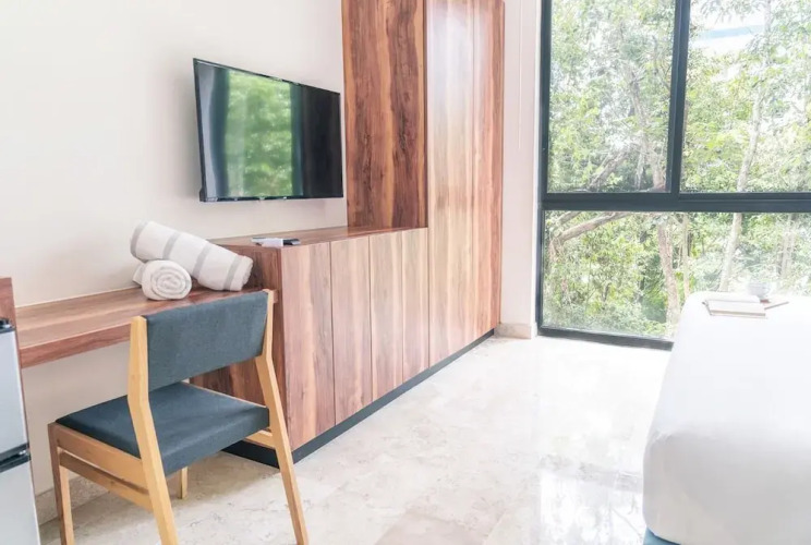 Отель Stunning 2BR Condo Breathtaking Sky Bar Rooftop Pool Gym, адрес на карте Тулум, Viva Residence 101 Itzamna, с характеристиками номеров и возможностью онлайн бронирования на сайте vashotel.ru , цены проживания и удобства.