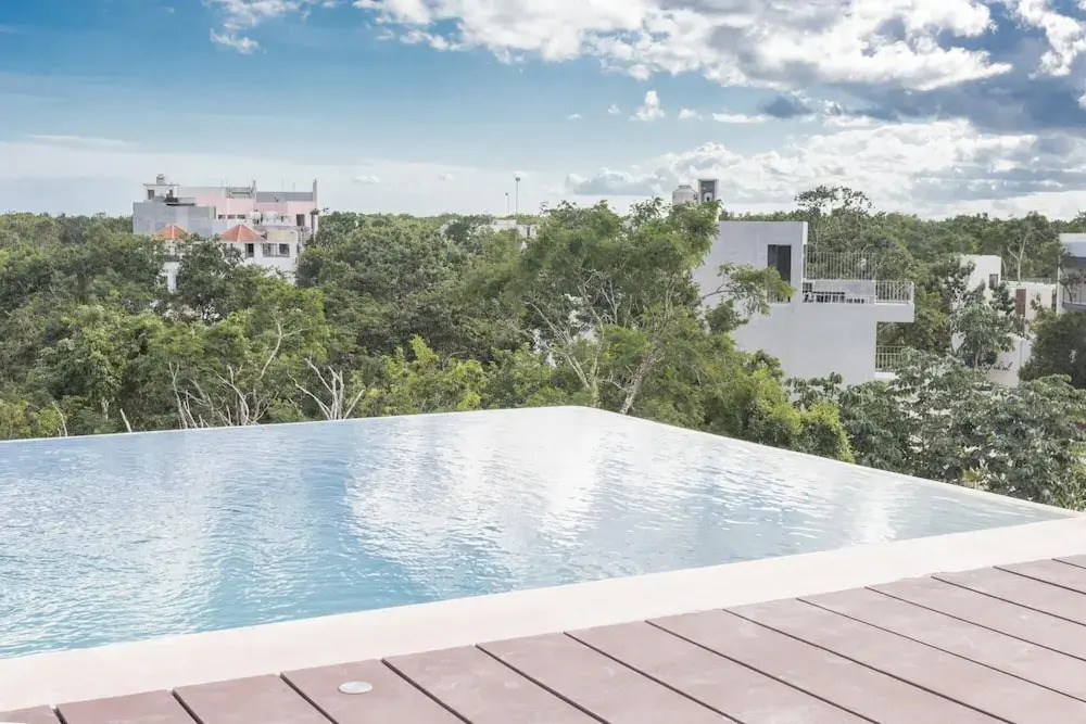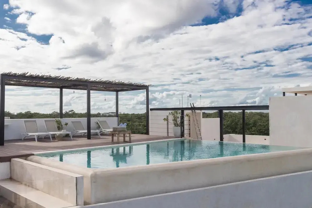 Отель Trendy Tulum Escape Condo Breathtaking View From Rooftop Terrace Infinity Pool Great Decor, адрес на карте Тулум, Balba 4, с характеристиками номеров и правом онлайн бронирования на ресурсе ВашОтель.RU , цены проживания и удобства.