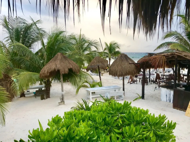 Отель Uma Tulum Oceanfront 2 звезды, адрес на карте Тулум, Carretera Tulum-Boca Paila, Avenida Coba, Playa Paraiso, 77760 Tulum, Quintana Roo, Mexico, с описанием номеров и правом онлайн бронирования на ресурсе vashotel.ru , стоимость проживания и удобства.