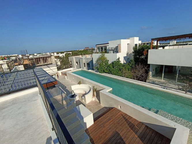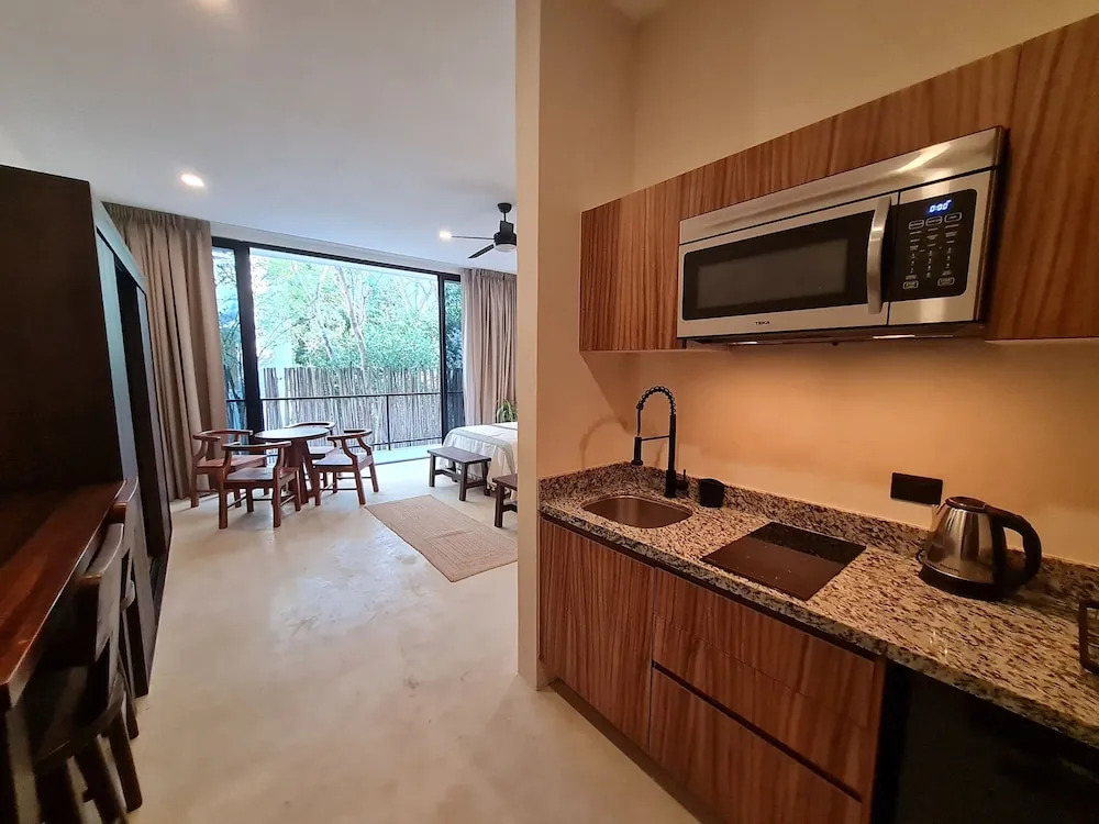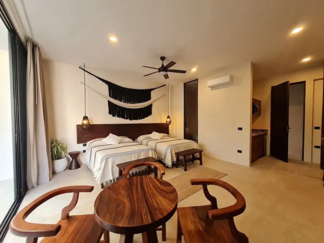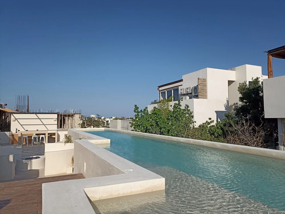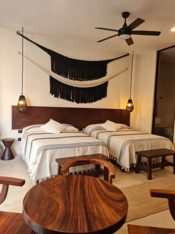 Отель Wonderful studio Rooftop pool, адрес на карте Тулум, Av. del parque, Aldea Zama, с описанием номеров и доступностью онлайн бронирования на ресурсе ВашОтель.RU , цены проживания и удобства.