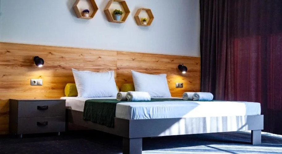 Номер уютно обставлен и оснащён необходимым, чтобы отдохнуть после долгого и насыщенного дня. Имеются телевизор. Оснащение зависит от выбранной категории номера.