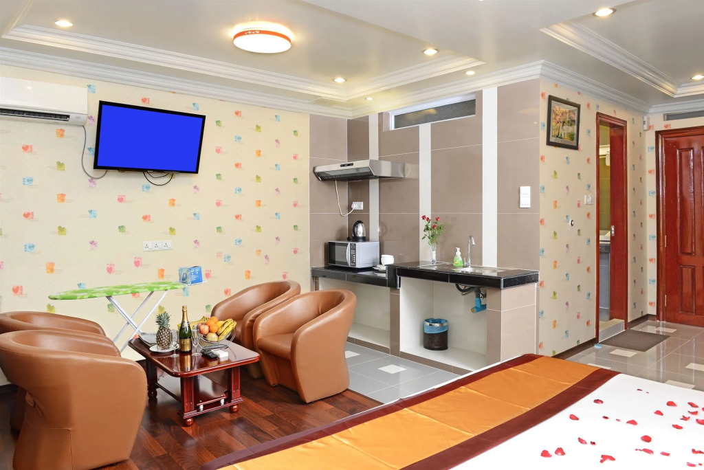 Номер уютно обставлен и оснащён необходимым, чтобы отдохнуть после долгого и насыщенного дня. Имеются душ, телевизор, мини-бар, халат и тапочки. Перечисленные услуги есть не во всех номерах.