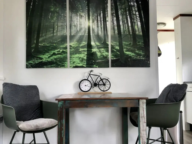 Отель Modern chalet with oven, near the Wadden Sea, адрес на карте Аккрум, Buorren 43, Tzummarum, 8851EL, с описанием номеров и доступностью онлайн бронирования на сайте vashotel.ru , стоимость проживания и удобства.