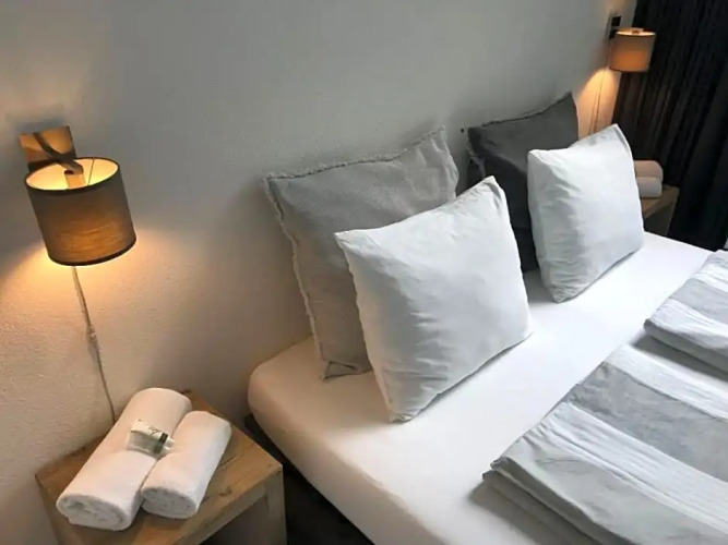 Номер уютно обставлен и оснащён необходимым, чтобы отдохнуть после долгого и насыщенного дня. Имеются душ и телевизор. Перечисленные услуги есть не во всех номерах.