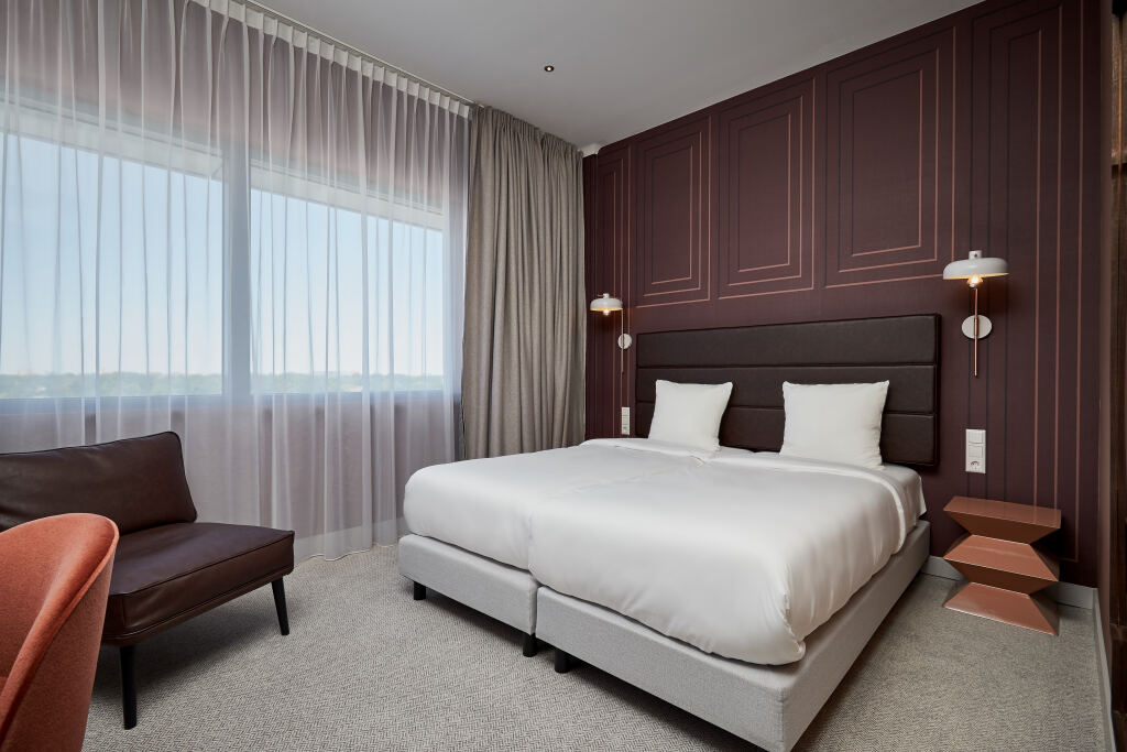 Guests are required to show a photo identification and credit card upon check-in. Please note that all Special Requests are subject to availability and additional charges may apply. Payment before arrival via bank transfer is required. The property will contact you after you book to provide instructions. Guests under the age of 18 can only check in with a parent or official guardian. Please inform Corendon Plaza Amsterdam Schiphol Airport Hotel in advance of your expected arrival time. You can use the Special Requests box when booking, or contact the property directly with the contact details provided in your confirmation. A damage deposit of EUR 200 is required on arrival. This will be collected by bank transfer. You should be reimbursed within 7 days of check-out. Your deposit will be refunded in full via bank transfer, subject to an inspection of the property. Please note that the free airport shuttle is available every half an hour during the following time slots: from 05:15 to 23:15. The airport shuttle remains in operation during the pandemic. When booking more than 10 rooms, different policies and additional supplements may apply. Please note that reservations are required for the hotel's restaurant and spa & wellness facilities and wearing slippers is mandatory in the Spa & Wellness.