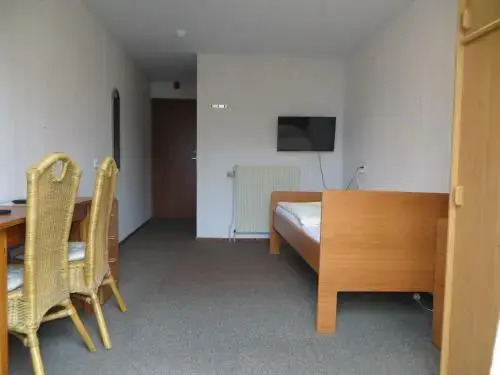 В номере вы найдёте душ и телевизор. Оснащение зависит от выбранной категории номера.