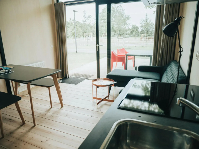Отель Modern chalet with terrace, located in a holiday park 800 m. from the beach, адрес на карте Уддорп, Vrijheidsweg 1, Ouddorp, 3253LS, с описанием номеров и возможностью онлайн бронирования на площадке vashotel.ru , стоимость проживания и удобства.