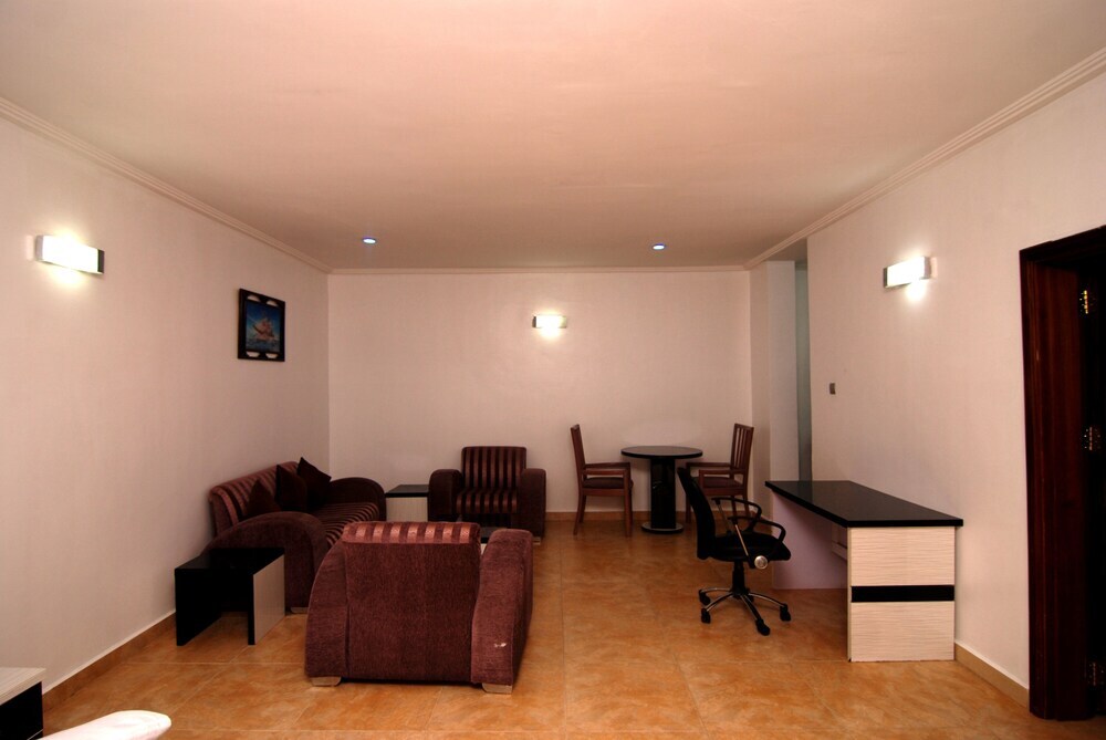 Отель The Grosvenor Suite 3 звезды, адрес на карте Абуджа, Plot 95A, 4th Avenue, Gwarinpa, с характеристиками номеров и доступностью онлайн бронирования на площадке ВашОтель.RU , цены проживания и удобства.