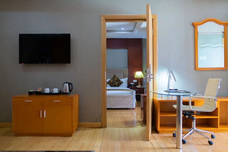 В номере вы найдёте телевизор и халат. Оснащение зависит от выбранной категории номера.