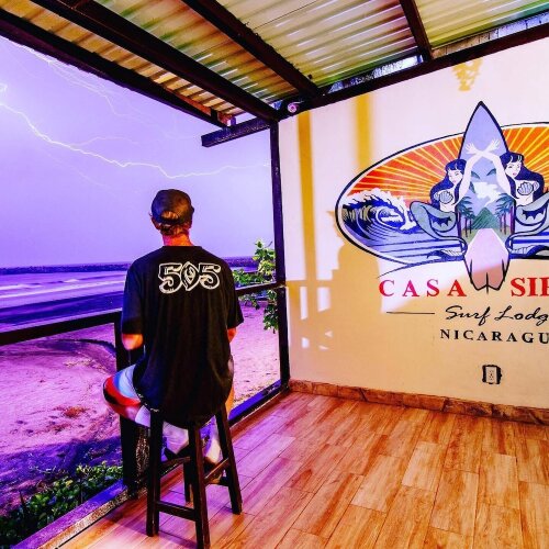 Отель Casa Sirena Surf Lodge 2 звезды, адрес на карте Мирамар, Del Parque Central 100 mts al Norte, с характеристиками номеров и возможностью онлайн бронирования на сайте ВашОтель.RU , цены проживания и удобства.