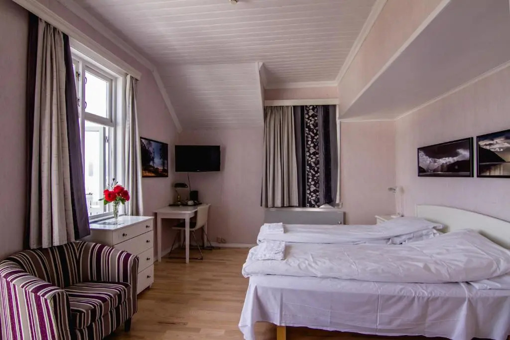Отель Kringsjå Hotell 3 звезды, адрес на карте Балестранд, Lærargata 9, с характеристиками номеров и доступностью онлайн бронирования на площадке ВашОтель.RU , стоимость проживания и удобства.
