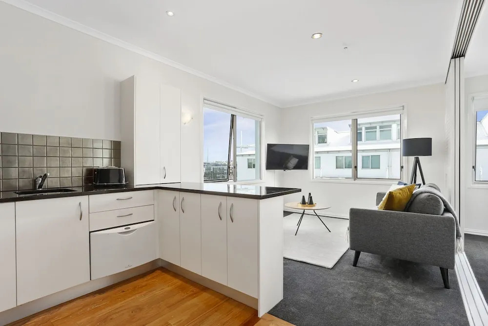 Отель Newly Refurnished Stylish One Bedroom, адрес на карте Окленд, Apt.13 / 137 Quay Street, с характеристиками номеров и возможностью онлайн бронирования на сайте vashotel.ru , стоимость проживания и удобства.