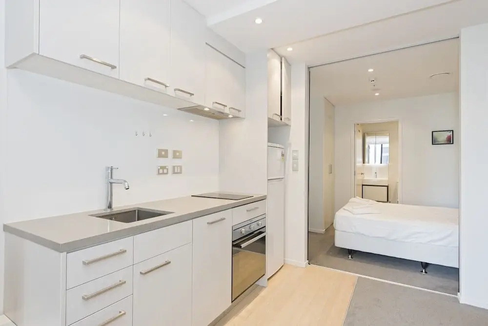 Отель Stylish Modern Studio, Queens Resid- Gym & Pool!!, адрес на карте Окленд, Unit 712B /17 Wakefield St, с описанием номеров и возможностью онлайн бронирования на площадке ВашОтель.RU , стоимость проживания и удобства.