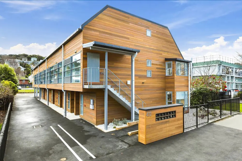 Отель The Cedar Luxury Apartments Dunedin 2 bedroom, адрес на карте Данедин, 432 Great King Street 14, North Dunedin, 9016 Dunedin, New Zealand, с описанием номеров и возможностью онлайн бронирования на ресурсе vashotel.ru , стоимость проживания и удобства.