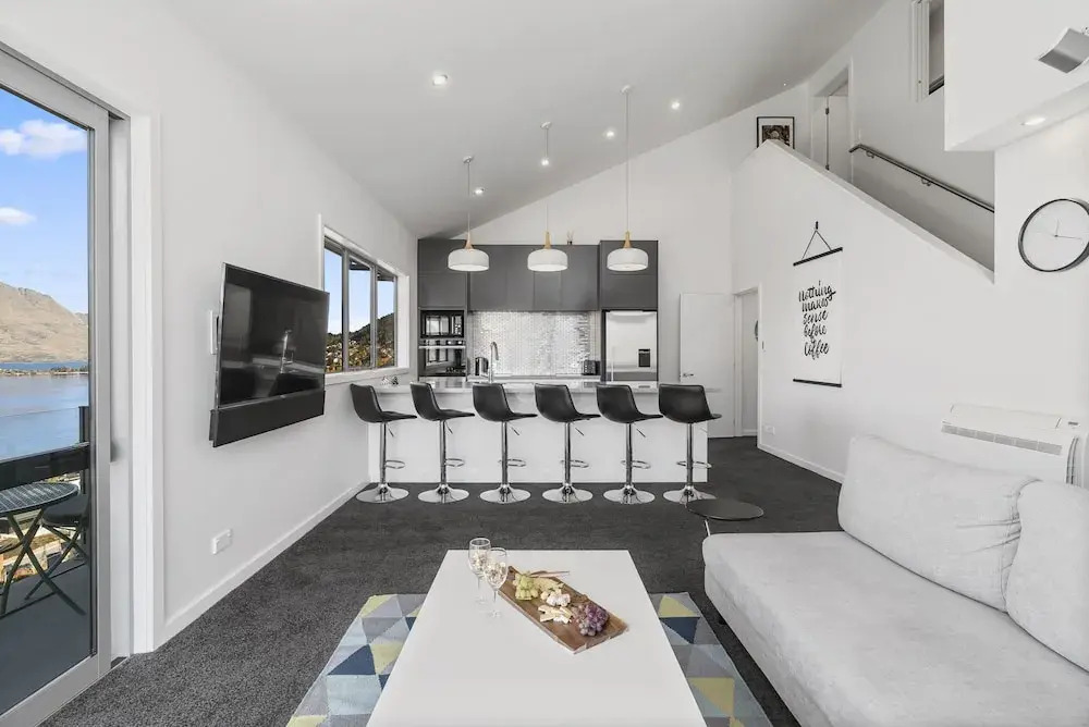 Отель Modern Alpine Living Spectacular View 4 звезды, адрес на карте Квинстаун, 58 Middleton Rd, с описанием номеров и возможностью онлайн бронирования на сайте ВашОтель.RU , цены проживания и удобства.