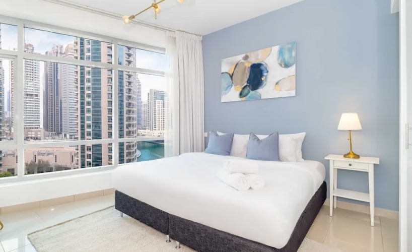 Отель Luxurious 2BR w/ Stunning Marina Views - Minutes From Dubai Metro & Tram!