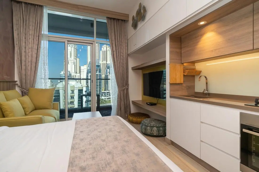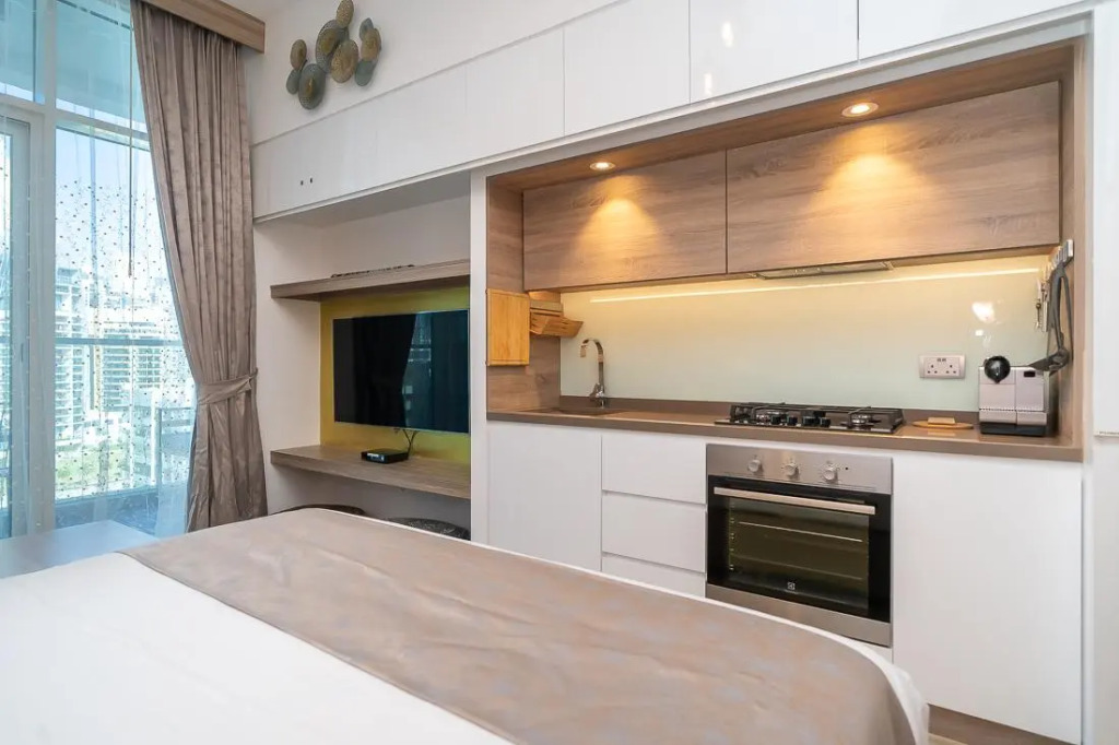Отель Gorgeous apartment in Studio One, адрес на карте Дубай, King Salman Bin Abdulaziz Al Saud Street, с характеристиками номеров и доступностью онлайн бронирования на площадке vashotel.ru , цены проживания и удобства.