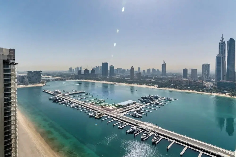 адрес на карте Дубай, Emaar Beachfront - The Palm Jumeirah, с описанием