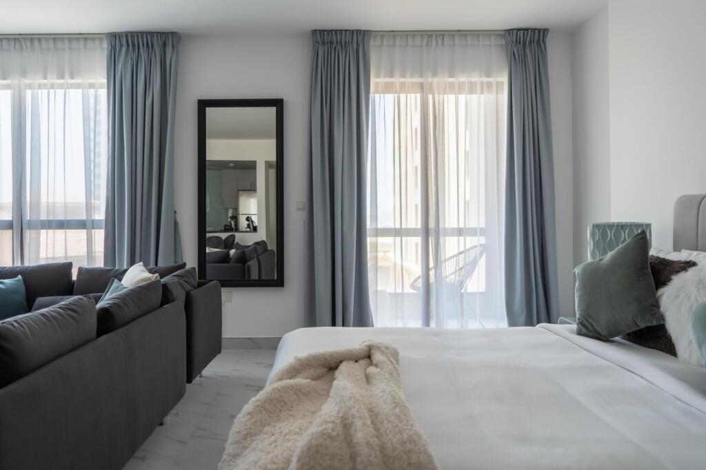 Отель Stylish studio w/balcony close to the beach JBR, адрес на карте Дубай, Murjan 2, Jumeirah Beach Residence, 205, с описанием номеров и возможностью онлайн бронирования на площадке vashotel.ru , стоимость проживания и удобства.