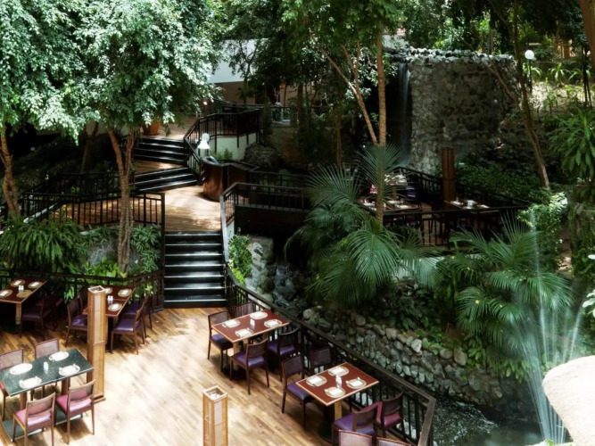 Вы сможете насладиться великолепными блюдами интернациональной кухни в ресторане отеля, который украшен настоящими тропическими деревьями. Также вас ждут ресторан под открытым небом, китайский ресторан и уютное кафе.