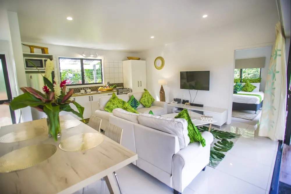 Отель Tiarepuku Pool Villa, адрес на карте Раротонга, Paitai Road, с характеристиками номеров и доступностью онлайн бронирования на площадке vashotel.ru , цены проживания и удобства.