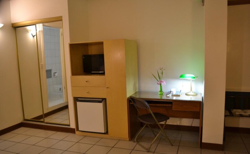 В номере вы найдёте душ, телевизор и тапочки. Оснащение зависит от выбранной категории номера.