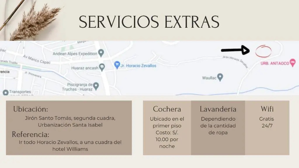 Отель Milagros' house, адрес на карте Уарас, Avenida Santo Tomás, Huaraz, с описанием номеров и доступностью онлайн бронирования на площадке vashotel.ru , стоимость проживания и удобства.