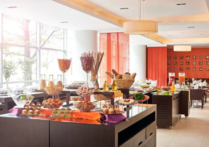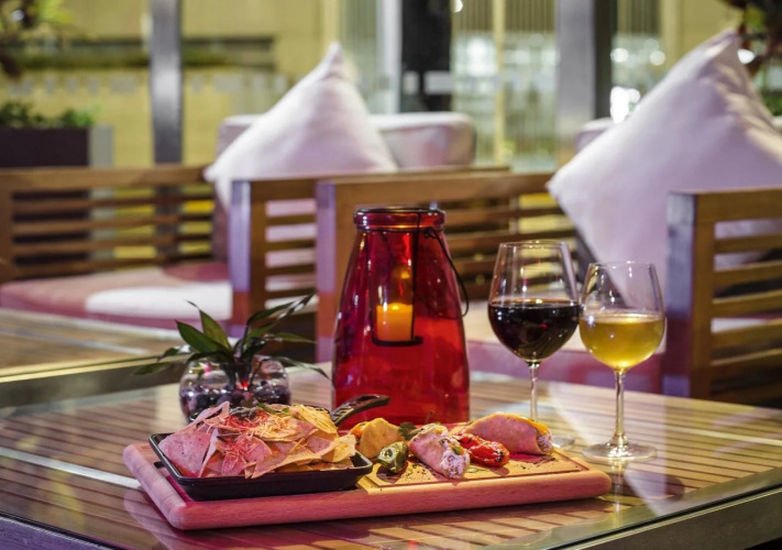 Для удобства гостей в отеле работает ресторан, открытый с 6.00 до 23.00, где гостям предложат блюда международной кухни. В течение дня гости могут выпить коктейли в лаундж-баре.