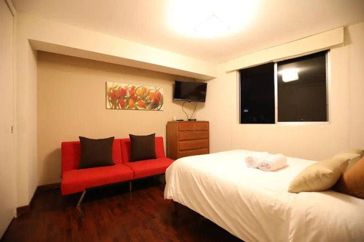 Отель Rustic And Homy 16th Floor Flat in Miraflores, адрес на карте Лима, Av. 28 de Julio 801 dpto. 1602, Miraflores, 15074, Lima, Peru, PE, с описанием номеров и доступностью онлайн бронирования на сайте ВашОтель.RU , цены проживания и удобства.