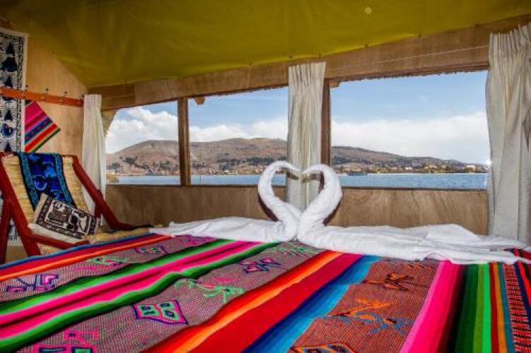 Отель Uros Sol y Luna Lodge, адрес на карте Пуно, Lake Titicaca uros peru, Puno, Peru, с описанием номеров и возможностью онлайн бронирования на ресурсе ВашОтель.RU , цены проживания и удобства.