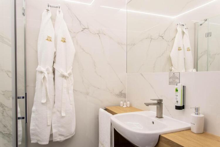 Номер уютно обставлен и оснащён необходимым, чтобы отдохнуть после долгого и насыщенного дня. Имеются душ, телевизор и тапочки. Оснащение зависит от выбранной категории номера.