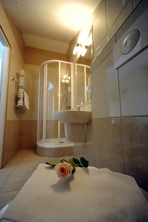В номере вы найдёте душ и телевизор. Оснащение зависит от выбранной категории номера.