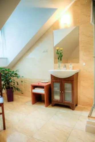 В номере гостей ждут душ, телевизор и тапочки. Оснащение зависит от выбранной категории номера.