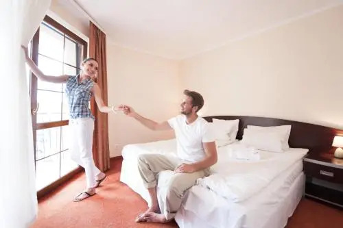 Номер уютно обставлен и оснащён необходимым, чтобы отдохнуть после долгого и насыщенного дня. Имеются душ и телевизор. Оснащение зависит от выбранной категории номера.