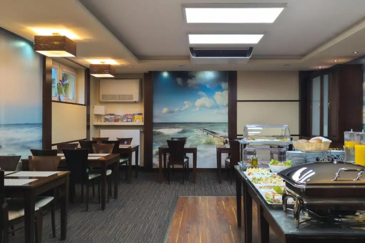 В трехзвездочном отеле Villa Angela имеется ресторан, где можно заказать бесплатный завтрак "шведский стол" с горячими блюдами, второй завтрак и обед. Для гостей, прибывших с деловым визитом, работают конференц-залы, и предлагаются услуги секретаря и бизнес-центра.