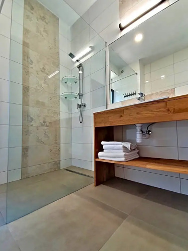 В номере вы найдёте душ и телевизор. Оснащение зависит от выбранной категории номера.