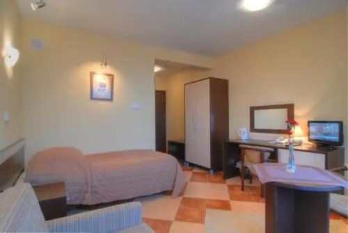 В номере вы найдёте телевизор. Оснащение зависит от выбранной категории номера.