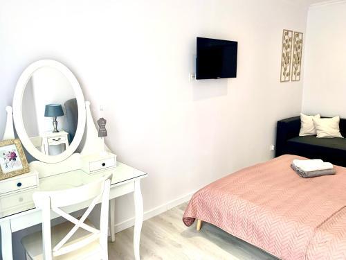 Персонал апартаментов говорит на английском и польском.