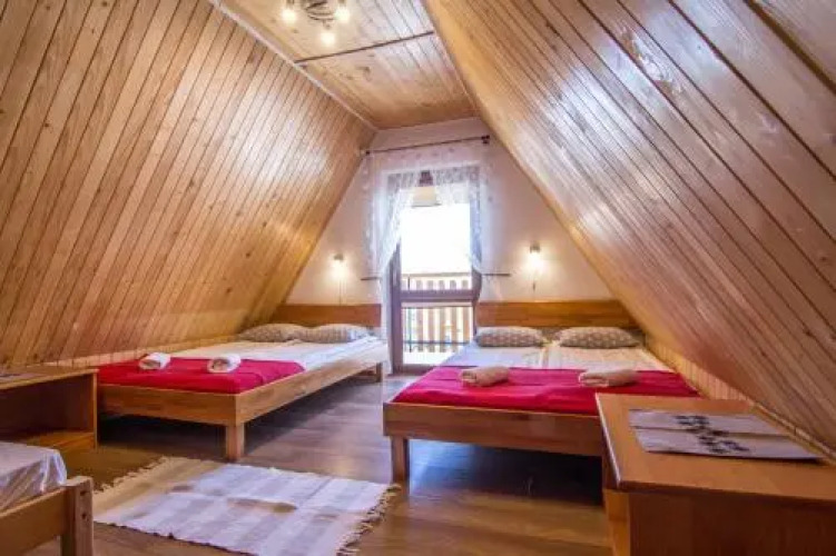 Отель Domek na Wierchu Zakopane, адрес на карте Косцелиско, ul. Droga na Wierch 12, с описанием номеров и доступностью онлайн бронирования на сайте vashotel.ru , цены проживания и удобства.