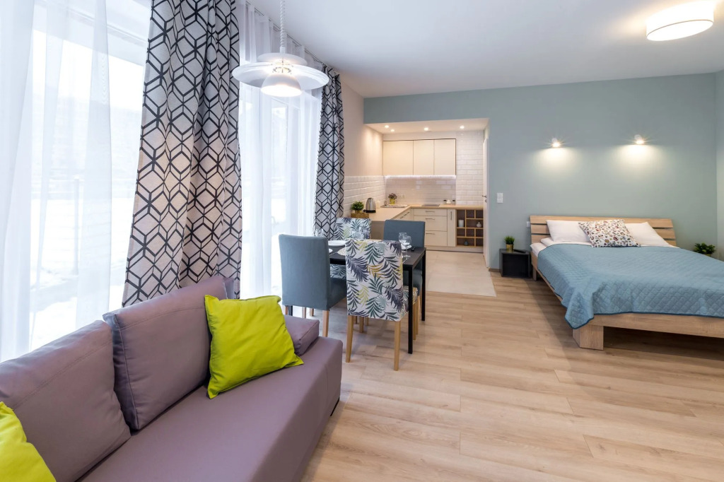 Доступная среда: работает лифт. А ещё в распоряжении гостей химчистка, банкомат и гладильные услуги. Сотрудники апартаментов поддержат беседу на английском, итальянском и польском.