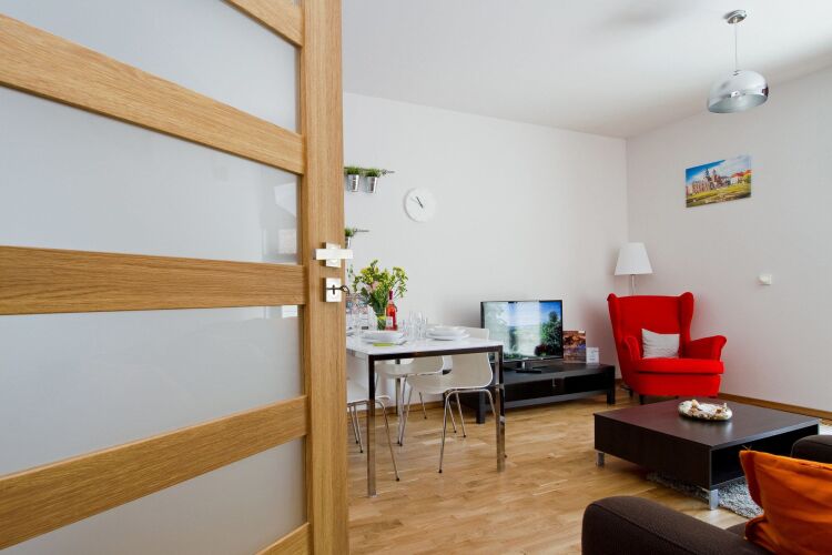 Удобно для гостей с ограниченными возможностями: на верхние этажи гостей поднимает лифт. А ещё в распоряжении гостей гладильные услуги. Сотрудники апартаментов поддержат беседу на английском и польском.